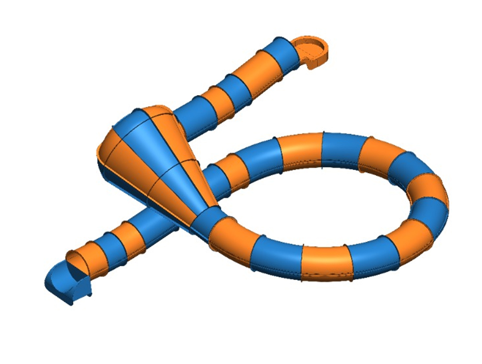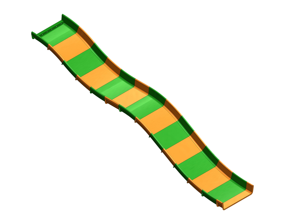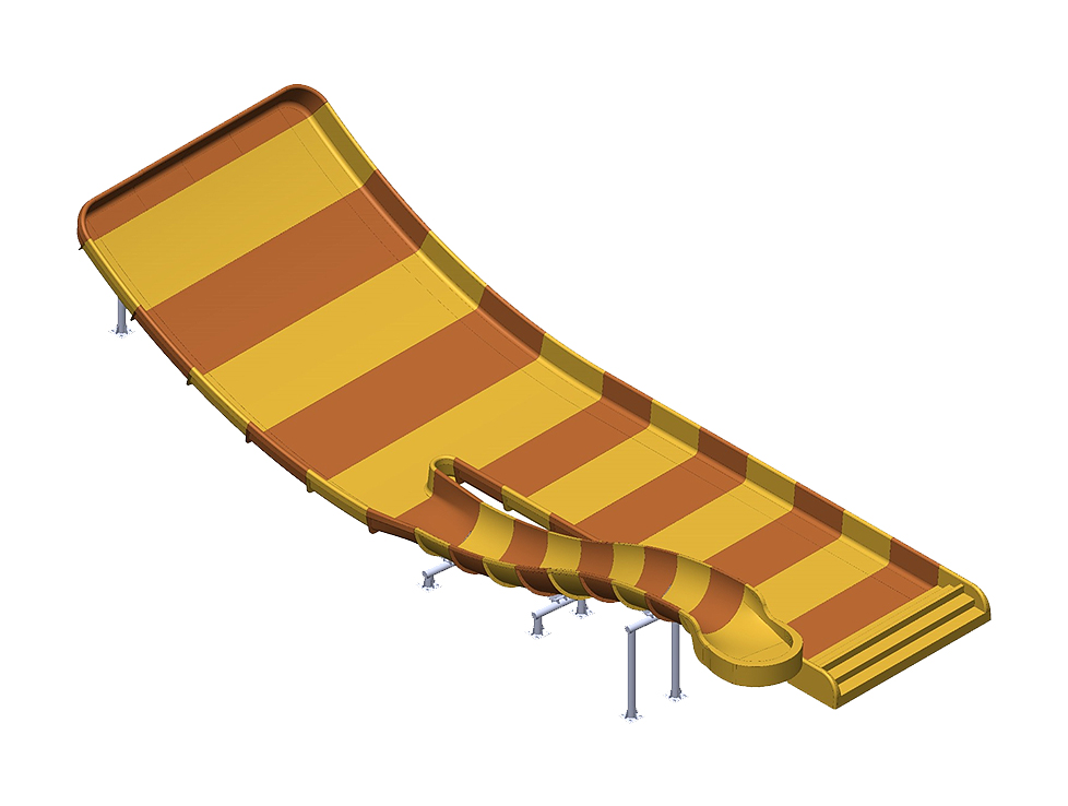 Surf Slide is a waterslide that is unique both in terms of its design configuration, its engineering, and its ride path. Created to satisfy thrill seekers, the slide incorporates the capability for riders to race one another via twin symmetrical slides. (Single versions also available.) They shoot into a wide, open bowl. Momentum hurtles them around the giant concave curve and into a short, enclosed tunnel before shooting them into a run-out or splash pool.